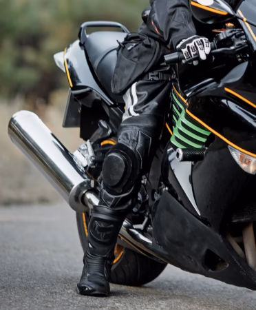 A gyakorlati motoroktatáson bukósisak, protektoros dzseki, protektoros nadrág, kesztyű és magas szárú zárt cipő vagy csizma viselése kötelező – ezt a KRESZ és az oktatási szabályzat egyaránt előírja. A megfelelő felszerelés nem csupán szabály: egy esésnél ezek azok, amelyek megvédenek. Az óra megkezdése előtt az oktató ellenőrzi a felszerelést – ha valamid hiányzik, az iskola tud felcsatolható protektort biztosítani.