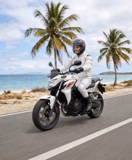 A tanfolyam középső fokozata – már érezhető erő, de még tele magabiztossággal. A 471 cc-es motor bőséges nyomatéka városi és országúti tempón egyaránt kiszámíthatóan visz, az egyenes ülőpozíció és az ABS-szel szerelt fékrendszer pedig segít, hogy a forgalomban is kontrollban maradj.